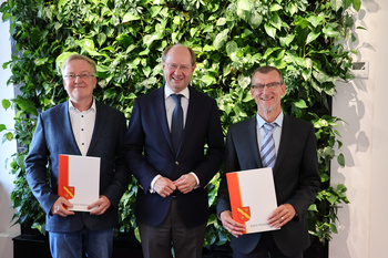 Gleich zwei langjährige Amtsleiter der Kreisverwaltung sind kürzlich in den Ruhestand bzw. die Freizeitphase der Altersteilzeit verabschiedet worden. Ralf Holtstiege als Leiter des Amtes für öffentliche Sicherheit, Ordnung und Straßenverkehr und Dr. Andreas Witte als Leiter des Veterinär- und Lebensmittelüberwachungsamtes waren beide mehr als 30 Jahre beim Kreis Warendorf beschäftigt und haben ihn in ihrer täglichen Arbeit geprägt. Hierfür dankte ihnen Landrat Dr. Olaf Gericke bei einer Feierstunde herzlich: „Sich für schöne Themen einzusetzen, fällt nicht schwer. Doch auf Sie und Ihr Fachwissen war auch bei schwierigen Themen immer Verlass.“ Für den anstehenden neuen Lebensabschnitt wünschte er den beiden alles erdenklich Gute.
