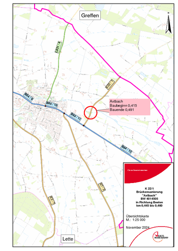 Die K22/1 (Harsewinkler Damm) in Beelen wird ab dem kommenden Montag (3. November) voraussichtlich bis Weihnachten für den Straßenverkehr komplett gesperrt. Grund ist die Sanierung der Brücke über den Axtbach.