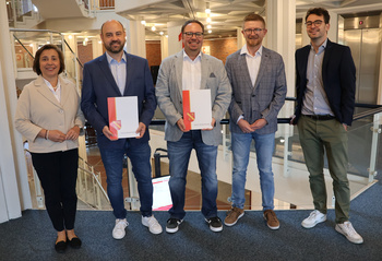 Frank Bachmann und Dirk Lehmann sind mehr als „nur“ Kollegen bei der Kreisverwaltung: sie kennen sich seit dem Kleinkindalter, verbrachten den Großteil ihrer Schulzeit zusammen und begannen gleichzeitig die Ausbildung bei der Kreisverwaltung. Jetzt feierten sie ihr 25-jähriges Dienstjubiläum. Sozialdezernentin Dr. Anna Arizzi Rusche gratulierte den beiden dazu herzlich und dankte ihnen für ihren Einsatz – verbunden mit den besten Wünschen für die Zukunft.