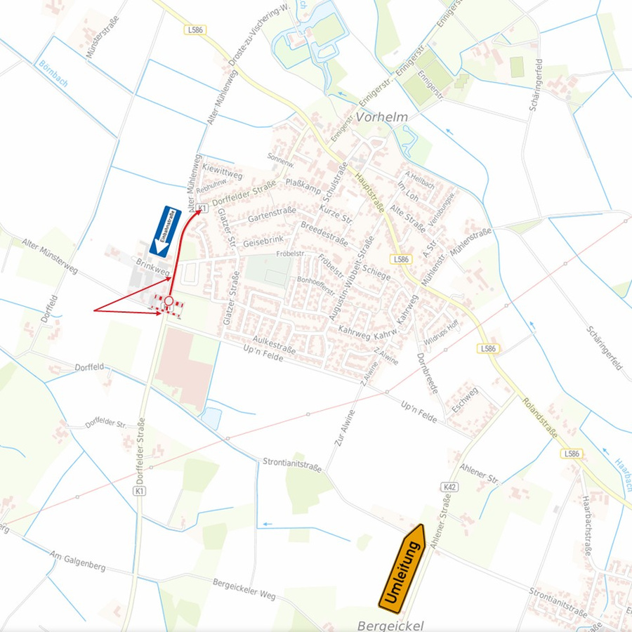 Der Kreis Warendorf bittet alle Verkehrsteilnehmer und insbesondere die Anlieger des Brinkwegs um Verständnis für die unvermeidbaren Beeinträchtigungen.