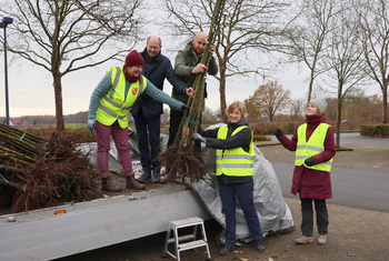 500 Apfelbäume hat der Kreis Warendorf im Rahmen der Aktion „Für jeden Bürger einen Baum“ verschenkt. Im Oktober war die Aktion ausgerufen worden, am letzten Samstag fand die Ausgabe der ca. drei Meter hohen Stämme am Kreishaus statt. Die Mitarbeiterinnen und Mitarbeiter des Amtes für Planung und Naturschutz hatten die „Ausgabestraße“ perfekt organisiert: 100 Abholerinnen und Abholer pro Stunde konnten ohne lange Wartezeit zwischen fünf alten Apfelsorten wählen.