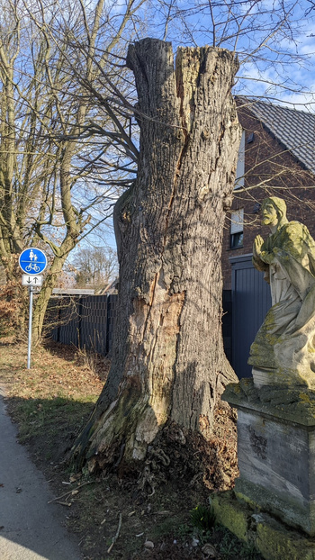 An der Sassenberger Straße in Warendorf flankierten in der Vergangenheit zwei stattliche Winter-Linden einen Bildstock mit der Darstellung „Christi am Ölberg“. Bereits im „Naturdenkmalbuch“ aus dem Jahre 1962 waren die Linden als Naturdenkmal erfasst. Über die Jahre waren immer wieder Baumpflegearbeiten- und Kronenschnitte an den beiden Bäumen erforderlich. Doch mittlerweile ist der Baum stark geschädigt und besteht nur noch aus einem Baumtorso. Sowohl der Stamm als auch der Wurzelbereich weisen erhebliche Schäden auf, darunter Brandkrustenpilzbefall, Verletzungen an Rinde und Wurzel sowie fortgeschrittene Stockfäule. Aufgrund dieser Vielzahl an Schadsymptomen wurde bereits zuvor die Baumkrone entfernt, um akute Gefahren zu reduzieren. Aufgrund des Standortes des Baumes zwischen Radweg, Straße und Privatgrundstück ist die Sicherheitserwartung entsprechend hoch.