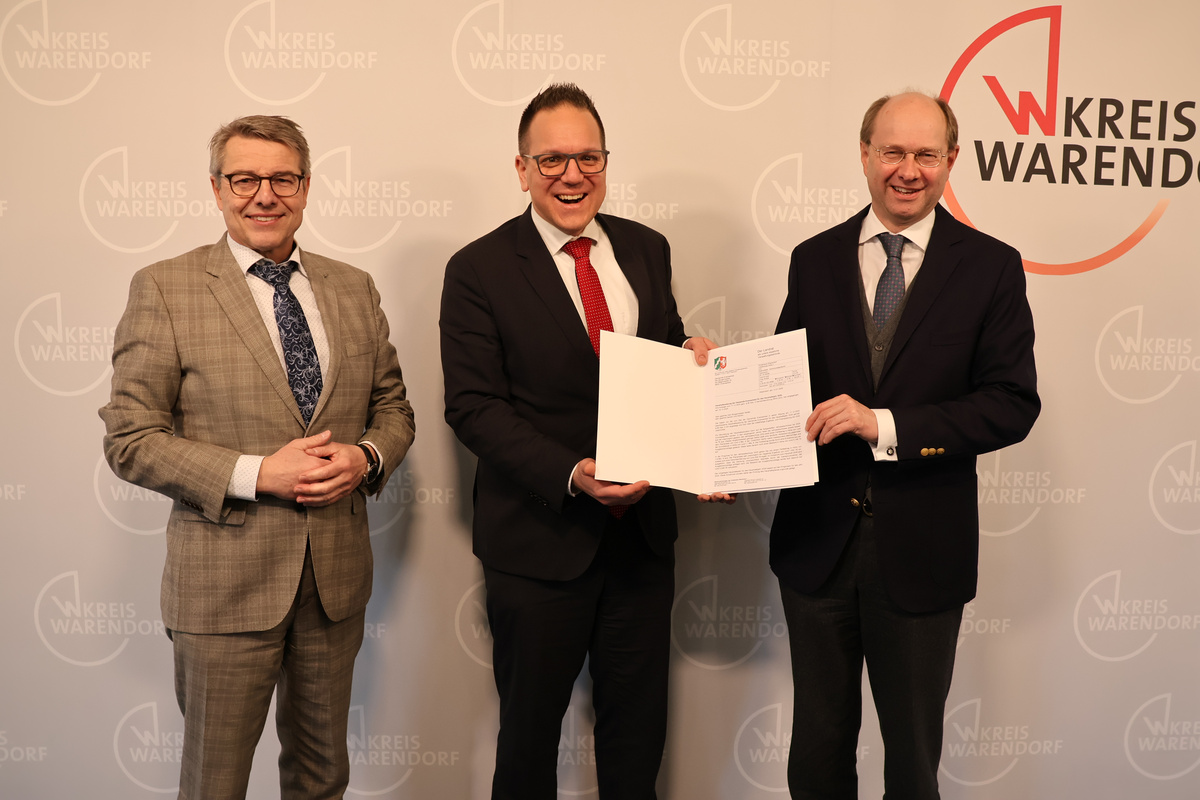 „Das zeigt, wie sehr auch wirtschaftlich starke Gemeinden wie Everswinkel unter einer massiven strukturellen Unterfinanzierung leiden, die ihre Handlungsfähigkeit zunehmend einschränkt“, stellt Landrat Dr. Olaf Gericke bei der Übergabe der Haushaltverfügung an Bürgermeister Sebastian Seidel fest. „Insbesondere die kontinuierlich steigenden Sozialleistungen, die in Berlin und Düsseldorf beschlossen worden sind, belasten die kommunalen Haushalte erheblich. Wir brauchen dringend eine dauerhafte, den Aufgaben angemessene Finanzierung der Kommunen durch Bund und Ländern. Sparanstrengungen der Kommunen alleine können in dieser Situation nicht ausreichen, um die Haushalte zu sanieren“, so Dr. Gericke weiter.