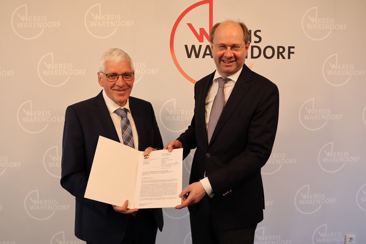 „Diese Haushaltssituation zeigt, wie sehr auch wirtschaftlich überdurchschnittlich starke Städte wie Sassenberg unter einer massiven strukturellen Unterfinanzierung leiden, die ihre Handlungsfähigkeit zunehmend einschränkt“, stellt Landrat Dr. Olaf Gericke bei der Übergabe der Haushaltverfügung an Bürgermeister Josef Uphoff fest. „Insbesondere die kontinuierlich steigenden Sozialleistungen, die in Berlin und Düsseldorf beschlossen worden sind, belasten die kommunalen Haushalte erheblich. Wir brauchen dringend eine dauerhafte, den Aufgaben angemessene Finanzierung der Kommunen durch Bund und Ländern. Sparanstrengungen der Kommunen alleine können in dieser Situation nicht ausreichen, um die Haushalte zu sanieren“, so Dr. Gericke weiter.
