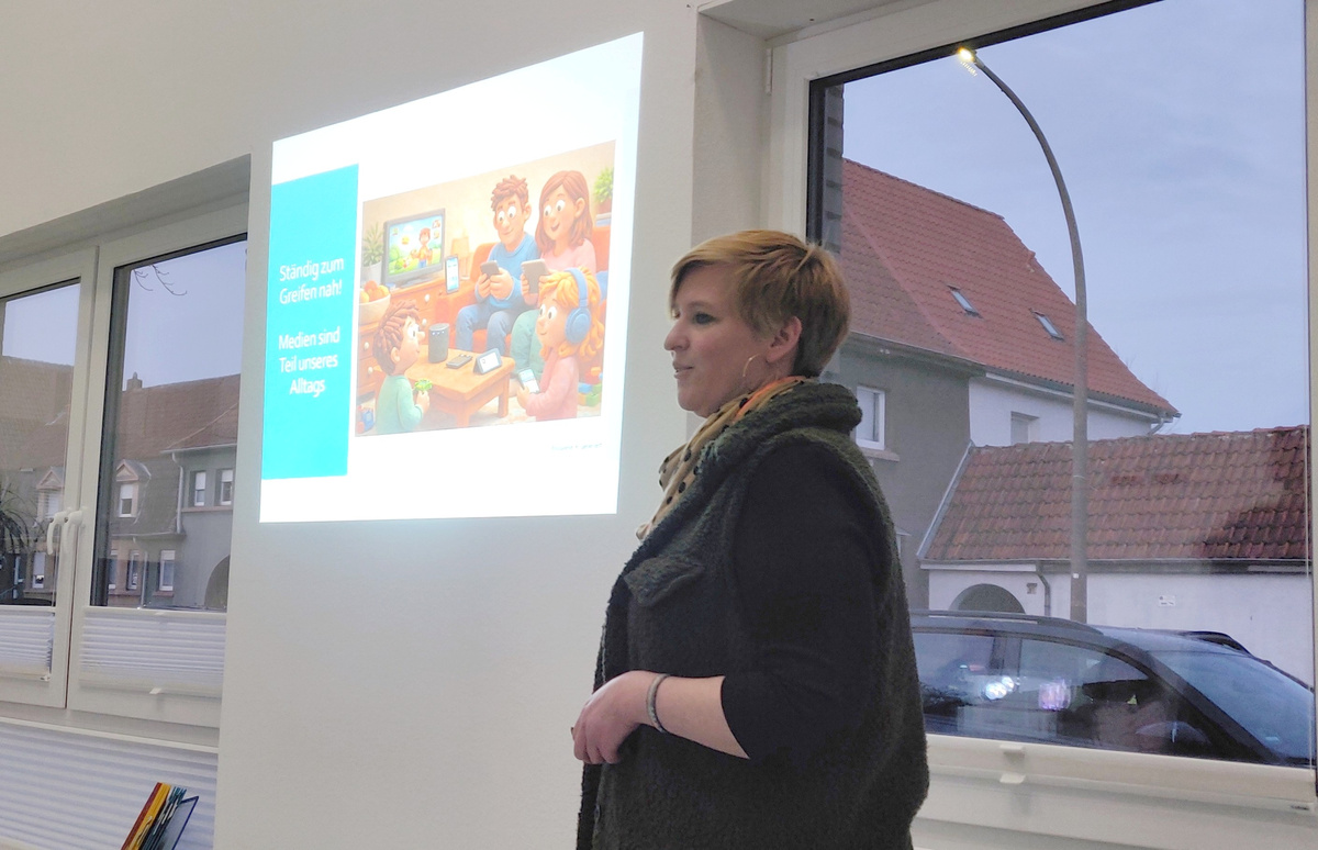 Die Referentin Vanessa Käller, Erzieherin und Medienpädagogin, vermittelte praxisnahes Wissen rund um die Mediennutzung im Kita-Alter. Im Fokus standen dabei sowohl empfohlene Orientierungswerte zur Bildschirmzeit als auch mögliche Risiken des übermäßigen Konsums. Gleichzeitig betonte sie die zentrale Rolle der Eltern, die ihre Kinder bei der Mediennutzung aktiv begleiten und unterstützen sollten.