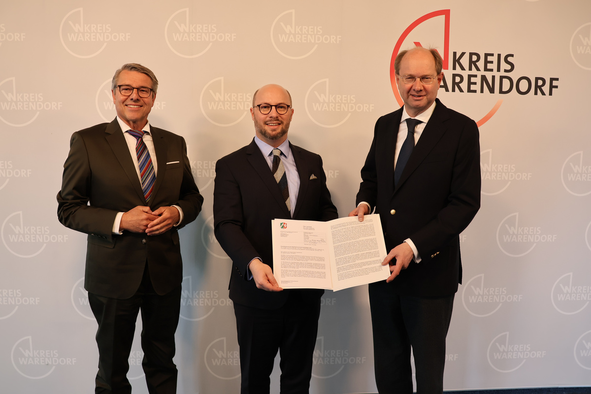 „Diese Haushaltssituation zeigt, wie sehr auch wirtschaftlich überdurchschnittlich starke Städte wie Beckum unter einer massiven strukturellen Unterfinanzierung leiden, die ihre Handlungsfähigkeit zunehmend einschränkt“, stellt Landrat Dr. Olaf Gericke bei der Übergabe der Haushaltverfügung an Bürgermeister Michael Gerdhenrich fest. „Insbesondere die kontinuierlich steigenden Sozialleistungen, die in Berlin und Düsseldorf beschlossen worden sind, belasten die kommunalen Haushalte erheblich. Wir brauchen dringend eine dauerhafte, den Aufgaben angemessene Finanzierung der Kommunen durch Bund und Ländern. Sparanstrengungen der Kommunen alleine können in dieser Situation nicht ausreichen, um die Haushalte zu sanieren“, so Dr. Gericke weiter.