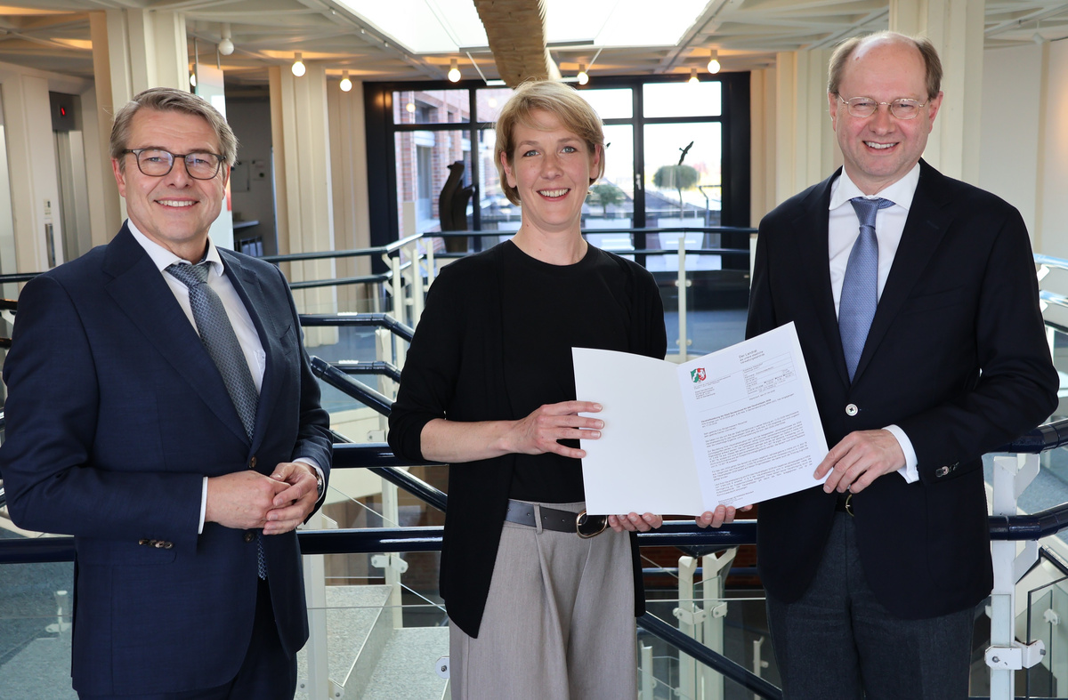 "Diese Haushaltssituation zeigt, wie sehr auch wirtschaftlich überdurchschnittlich starke Städte wie Sendenhorst unter einer massiven strukturellen Unterfinanzierung leiden, die ihre Handlungsfähigkeit zunehmend einschränkt", stellt Landrat Dr. Olaf Gericke bei der Übergabe der Haushaltverfügung an Bürgermeisterin Katrin Reuscher fest. „Insbesondere die kontinuierlich steigenden Sozialleistungen, die in Berlin und Düsseldorf beschlossen worden sind, belasten die kommunalen Haushalte erheblich. Wir brauchen dringend eine dauerhafte, den Aufgaben angemessene Finanzierung der Kommunen durch Bund und Länder. Sparanstrengungen der Kommunen alleine können in dieser Situation nicht ausreichen, um die Haushalte zu sanieren“, so Dr. Gericke weiter.