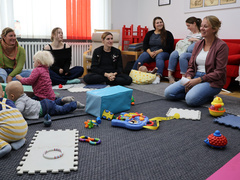 Kinderzahnärztin informiert beim Café Kinderwagen