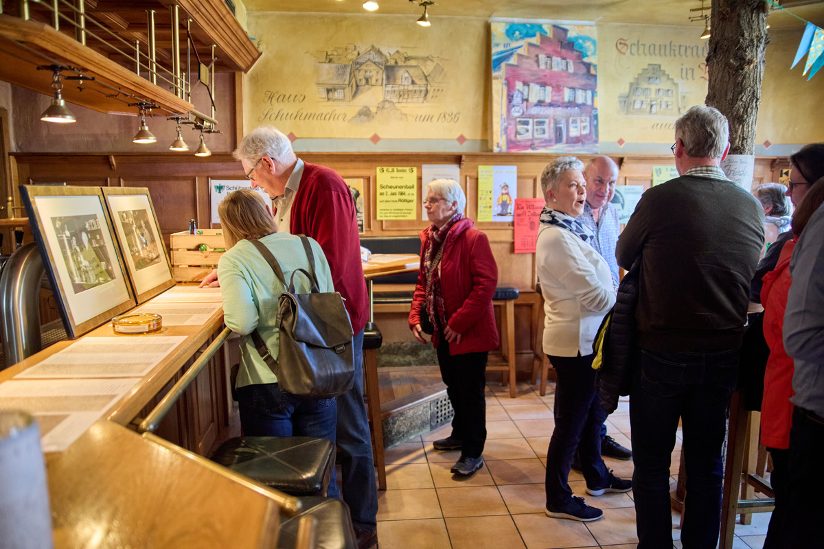 Besonders die Ausstellung mit Exponaten über Beelener Vereine und Kneipen sowie die Archivalienschau „Beelen hat viel zu erzählen“ brachten die Besucherinnen und Besucher miteinander und mit dem Team des Kreisarchivs ins Gespräch. Viele Interessierte nutzten die Möglichkeit zur eigenen Familienforschung.